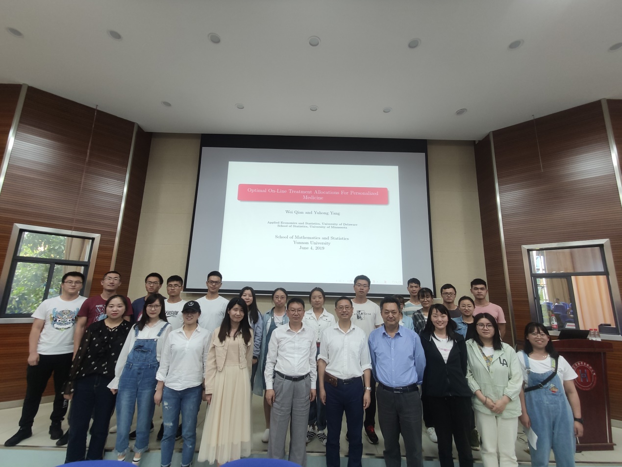 2019年6月4日下午,应公司李建平教授邀请,美国明尼苏达大学杨宇红教授到公司讲学,在永利3044集团官网3103报告厅作了题为《Optimalon-line treatment allocations for personalized medicine》的学术报告。本次学术报告由公司经理唐年胜教授主持,副经理李建平教授、丁红林博士及博士硕士研究生参加了报告会。