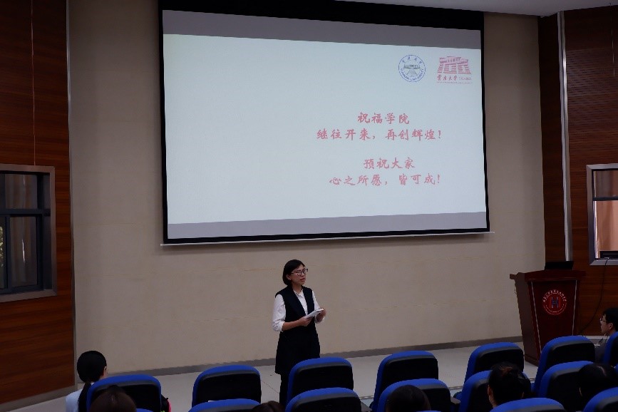 李倩倩学姐以不同阶段的状态为角度,分享了她选择走选调生的始末。首先,毕业以来心路历程,是从迷茫到努力,再到稳定,最后尘埃落定。其次,工作以来的成长,是学会了如何与老百姓打交道,“以真心换真心”,真正融入他们的生活,这样才能提高百姓的接纳度。最后,未来希望要好好爱自己:不论从事什么职业,都只是生活的一部分,我们的身份是父母的孩子,朋友的朋友,将来还会成为丈夫、妻子、父亲、母亲,“我们的社会责任不仅仅来自于工作,所以我们都要好好爱自己”!