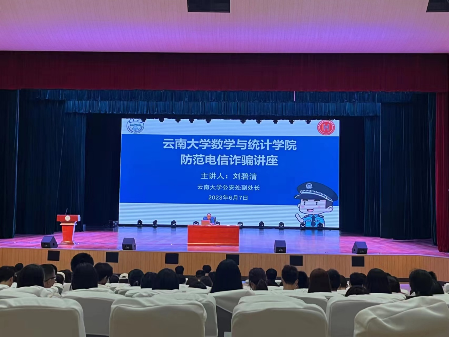 为切实提高广大师生对电信网络诈骗犯罪的识别与防范能力,普及防诈骗知识,维护师生的切身利益,预防各类网络电信诈骗事件,营造和谐平安的校园环境。 2023年6月7日中午13:00,公司在员工会堂举办防范电信诈骗主题教育讲座,讲座邀请永利3044集团官网公安处刘碧清副处长主讲,公司党委副书记杜芳芳老师主持,各年级辅导员、班主任及1000余名同学参加本次讲座。