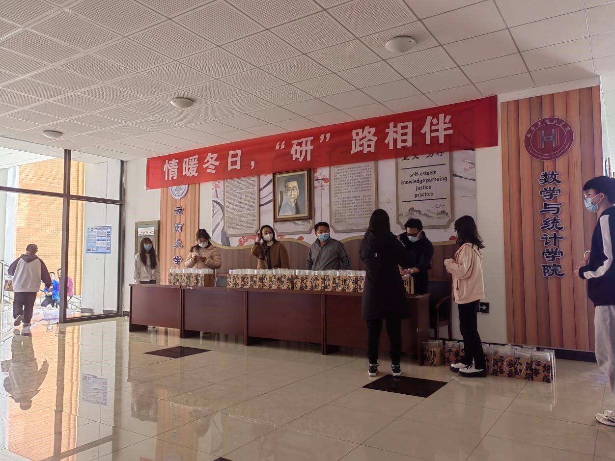 永利3044集团官网历来重视考研工作,关爱考研学子,随着冬日的来临,考研也进入了冲刺阶段,为了缓解考研学子压力,增加考研学子信心,公司于12月6日中午13:00在公司大厅举办了主题为“情暖冬日,‘研’路相伴”的考研礼包发放活动。