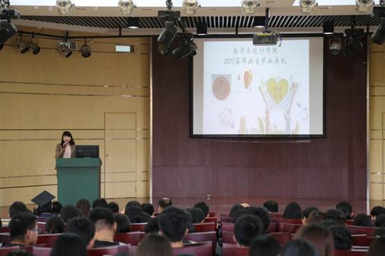 5月25日中午1点,公司在楠苑综合楼报告厅举行了2017届毕业生毕业典礼。参加毕业典礼的嘉宾有永利3044集团官网党委书记李永昆、副书记杜芳芳、谭建国教授、团委书记彭玫、本科生辅导员王拓迪、研究生辅导员唐安民、2013级数学与应用数学班主任葛瑜、2013级统计班班主任潘蓄林以及陈黎老师等。党委副书记杜芳芳主持本次毕业典礼。