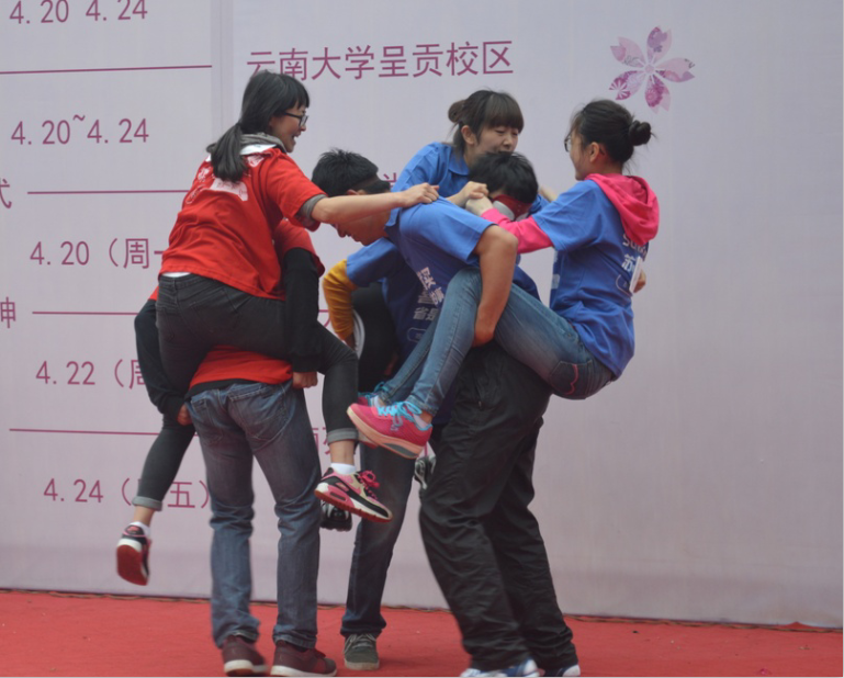 活动开始前,由主持人宣布比赛的流程和规则,随后比赛开始。第一个活动是“指压板大挑战”,参赛选手首先进行了体验,之后比赛开始,围观的观众渐渐多了起来,参赛者在指压板上叫声不断,很快进入了比赛的状态。接下来的比赛是“接力大比拼”,在这个比赛的过程中,各个参赛队伍间表现了很强的团队合作意识,相互之间配合的很默契。