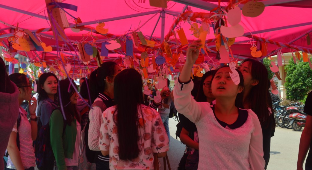 而作为此次女生节独具特色的活动之一---许愿长廊也在同学们长时间的准备后与大家见面了。
