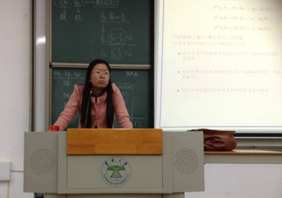 报告中,李会琼老师首先介绍了在生物等价性评价中常见的几种问题。并对如何减少不可控因素的方法进行了深入阐述,她指出,疾病检查和新药疗效验证等生活生产中的重要问题尤其广泛频繁的会用到等价性检验,为了减少检验过程中犯错误的概率,可以通过考虑区间估计来实现。报告中,李会琼老师提出了一个新颖的方法,即可以考虑用检验尿液的方法,从而可以使得试验原来本需检查血液所需的经费和精力大大减少。报告结束后,李老师就如何发表论文做了深入的讲解。她指出,研究生阶段,可以在前人研究的基础上做推广,大家可以考虑老问题新方法,新问题老方法,新问题新方法。最后关于到场同学问及读博深造,出国留学,未来职业生涯的规划等大家都很关心同时又迷惑的问题,李老师都做了亲切细致透彻的解答