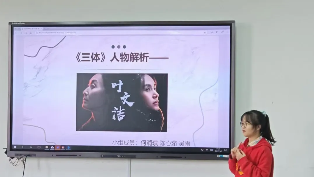 金婷、李莉、郑新玉同学分享到,这部作品不仅展现了主人公们在社会变迁中的成长历程,也深刻揭示了中国农村社会的复杂面貌。通过细腻的笔触,作者路遥成功地塑造了一系列鲜活的人物形象,让读者能够感受到那个时代人们的生活状态和精神追求。《平凡的世界》以其真实而深刻的社会背景,以及对人性的深刻洞察,成为了一部跨越时代的文学经典。对于《三体》,同学们则围绕其对未来景象的描绘和对人类命运的思考展开讨论,惊叹于小说与中国科技发展的呼应,激发了对未来探索的热情。