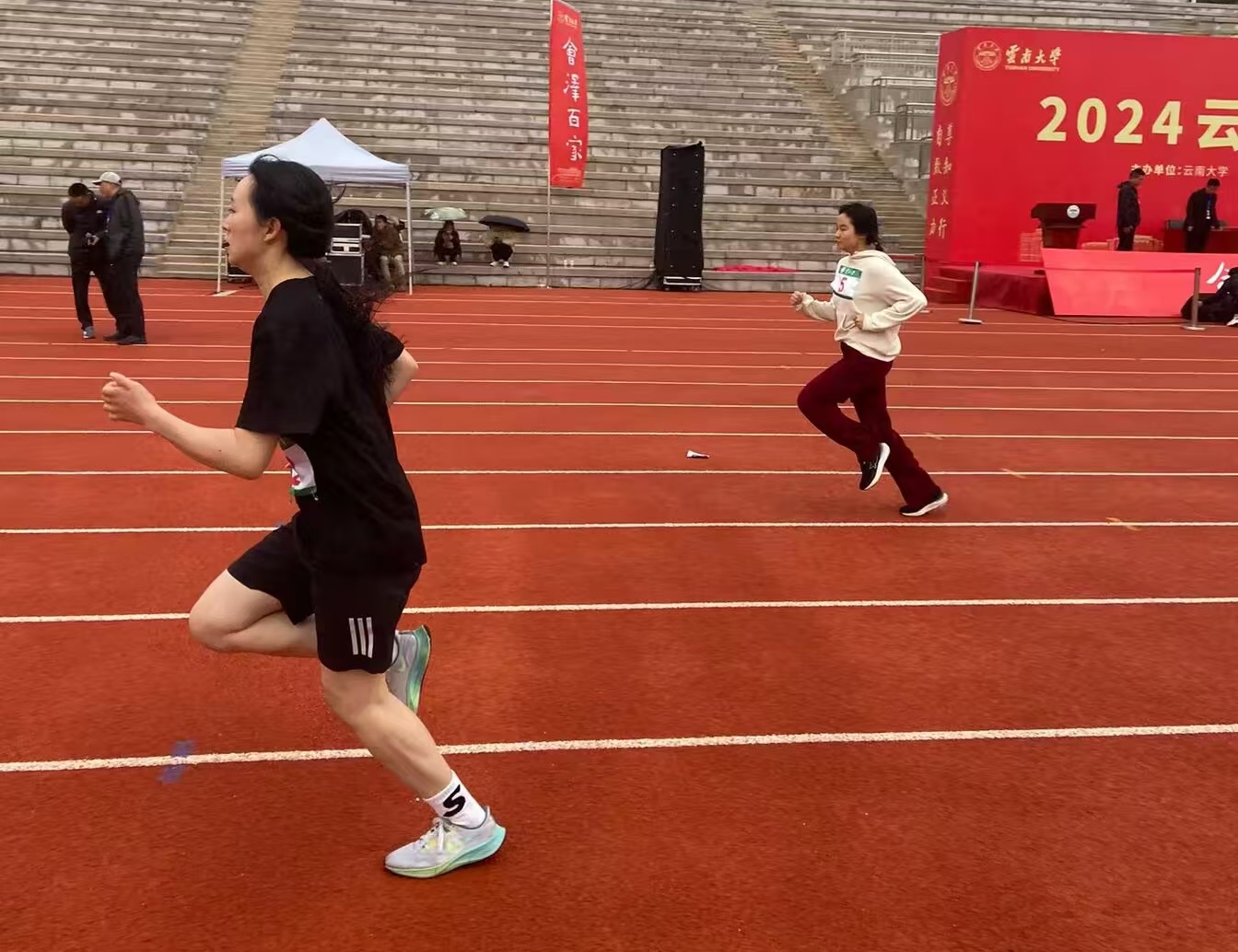 在女子1500米的赛道上,赵婧涵和杨羽青同学同样也展现出了惊人的毅力以及不服输的劲头,她们不服输、永不言弃的拼搏意志深深感染者公司每一位师生,这种光芒必将引领青年学子勇攀高峰。