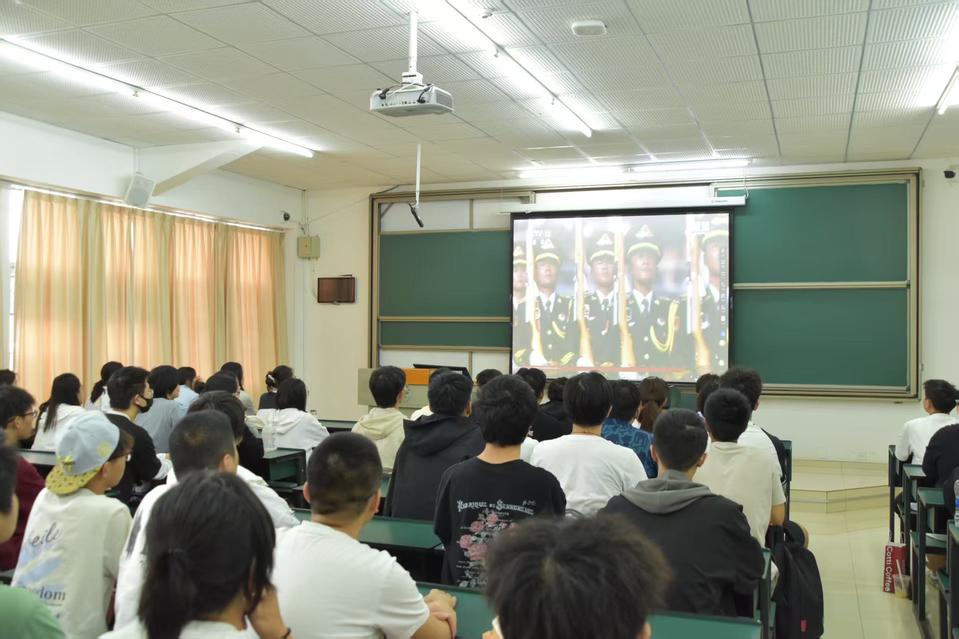 公司按照教职工主会场(格物楼3103报告厅),以及格物楼5~6楼的14间教室作为分会场,公司所有师生一同观看纪念中国人民抗日战争暨世界反法西斯战争胜利80周年大会直播。长风猎猎、旗帜巍巍激荡起炽热的家国情怀与强烈的使命担当。