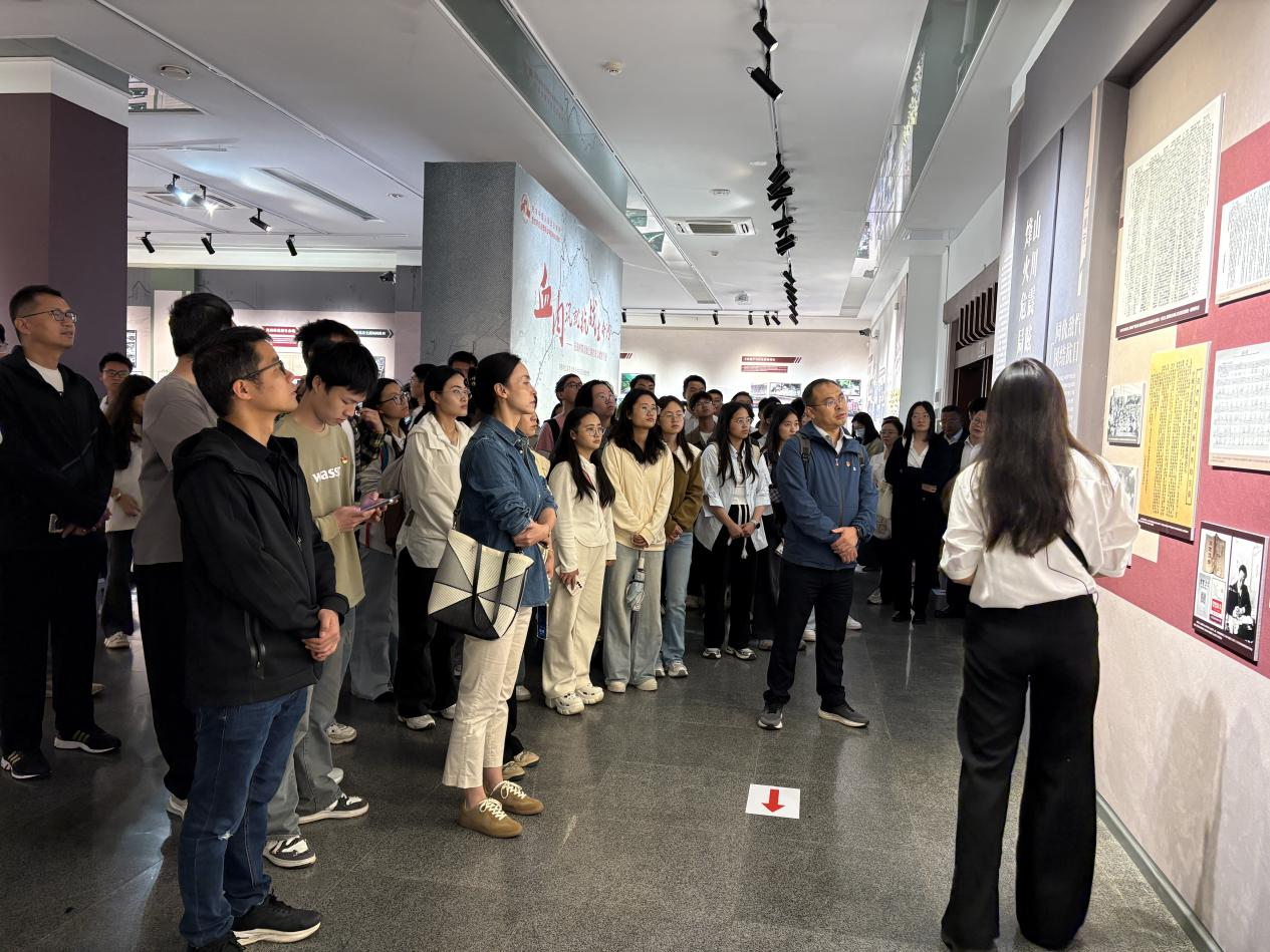 走进“血肉筑就抗战生命线——抗战时期滇缅公路”展厅,映入眼帘的是一幅幅泛黄的历史图片,师生们紧紧跟随讲解员的步伐,认真聆听每一张图片背后的历史故事。当听到讲解员介绍滇缅公路作为抗战 “生命线” 的重大价值,以及云南人民在修建公路和抗战中做出的巨大牺牲时,大家纷纷驻足凝视展柜中的文物,一件件斑驳的实物文物,将大家带回那个烽火连天的年代,这些工业文物无声诉说着当年后方工业支援抗战的艰辛历程。让人们不禁感慨:如此艰苦的环境下,由孩童,妇女,老人修筑的,风餐露宿,夜以继日修通的“生命线”,不仅是一条公路,更是中华民族不屈不挠的精神象征。