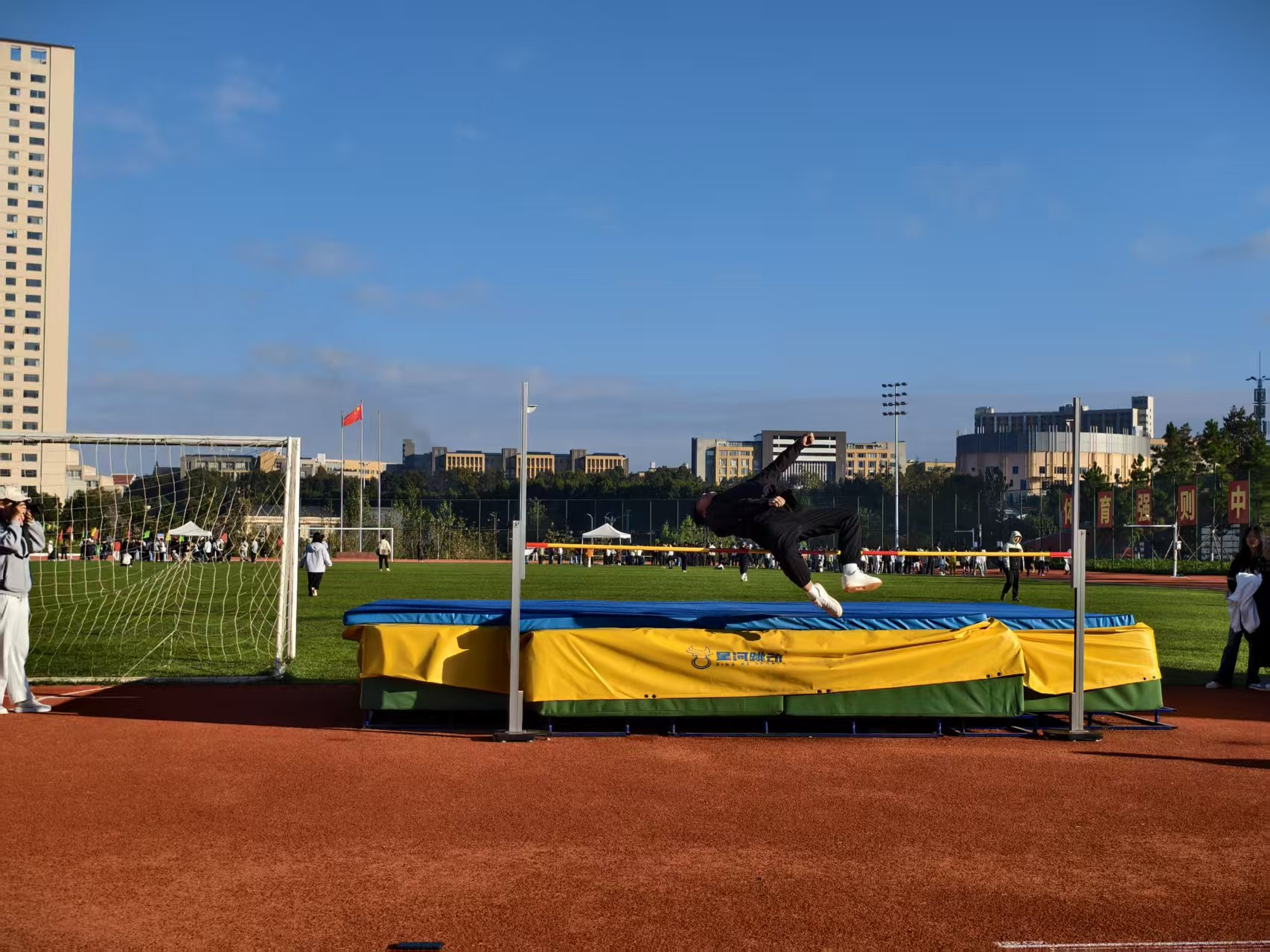 田赛赛场上同样亮点纷呈:童博勇同学在男子跳高决赛中纵身一跃,跃居第八;吴欣鸿同学在男子立定跳远项目中奋力腾跃,获得第六名;何佳航同学更是在女子铅球赛场以一记势大力沉的投掷勇夺金牌,成为全场瞩目的焦点。