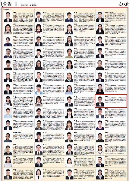 新时代是追梦者的时代,也是广大青少年成就梦想的时代。2022年5月4日,《人民日报》用四个整版刊登了100名本专科生国家奖学金获奖员工优秀代表和100名中等职业教育国家奖学金获奖员工优秀代表名录,公司2018级本科生李家欢位列其中。